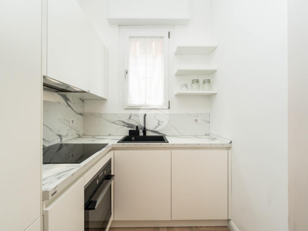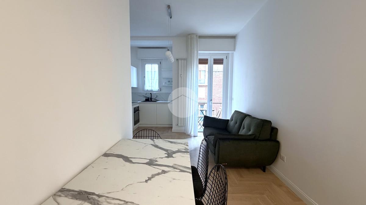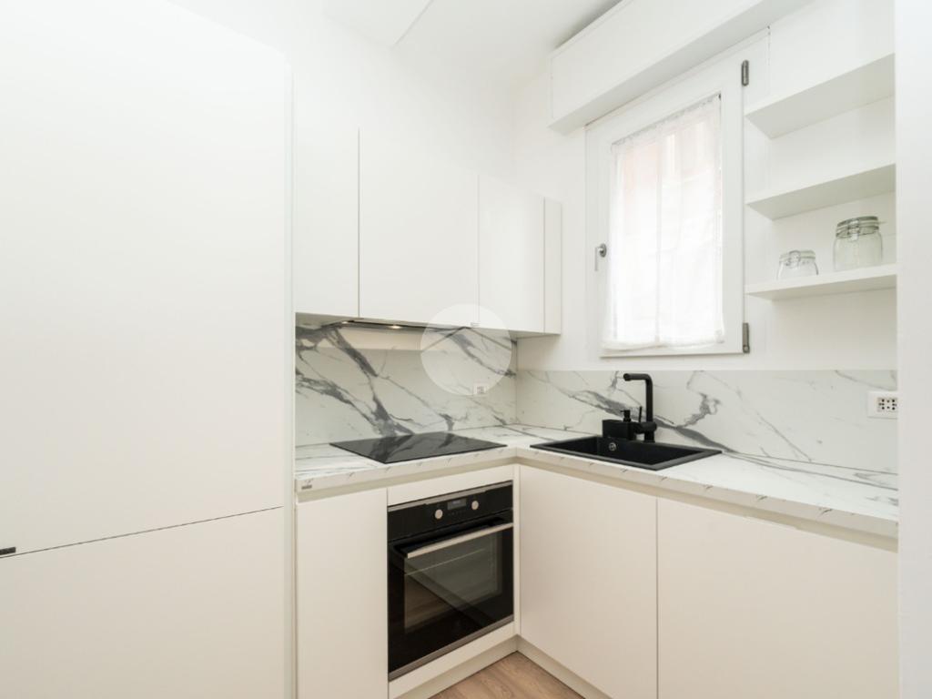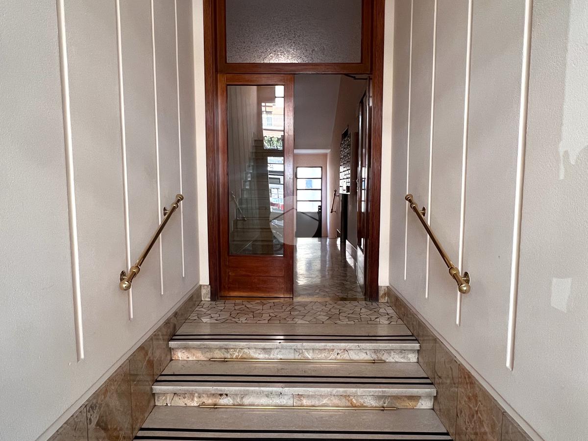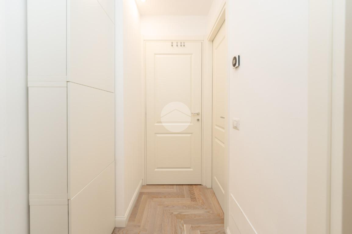L’appartamento, completamente ristrutturato, accoglie con un ampio ingresso che conduce a una luminosa zona living, vero cuore della casa. La cucina a vista, realizzata su misura, si integra perfettamente con l’ambiente e si apre su un balcone con affaccio interno, ideale per godere di tranquillità e privacy pur restando nel pieno della città.