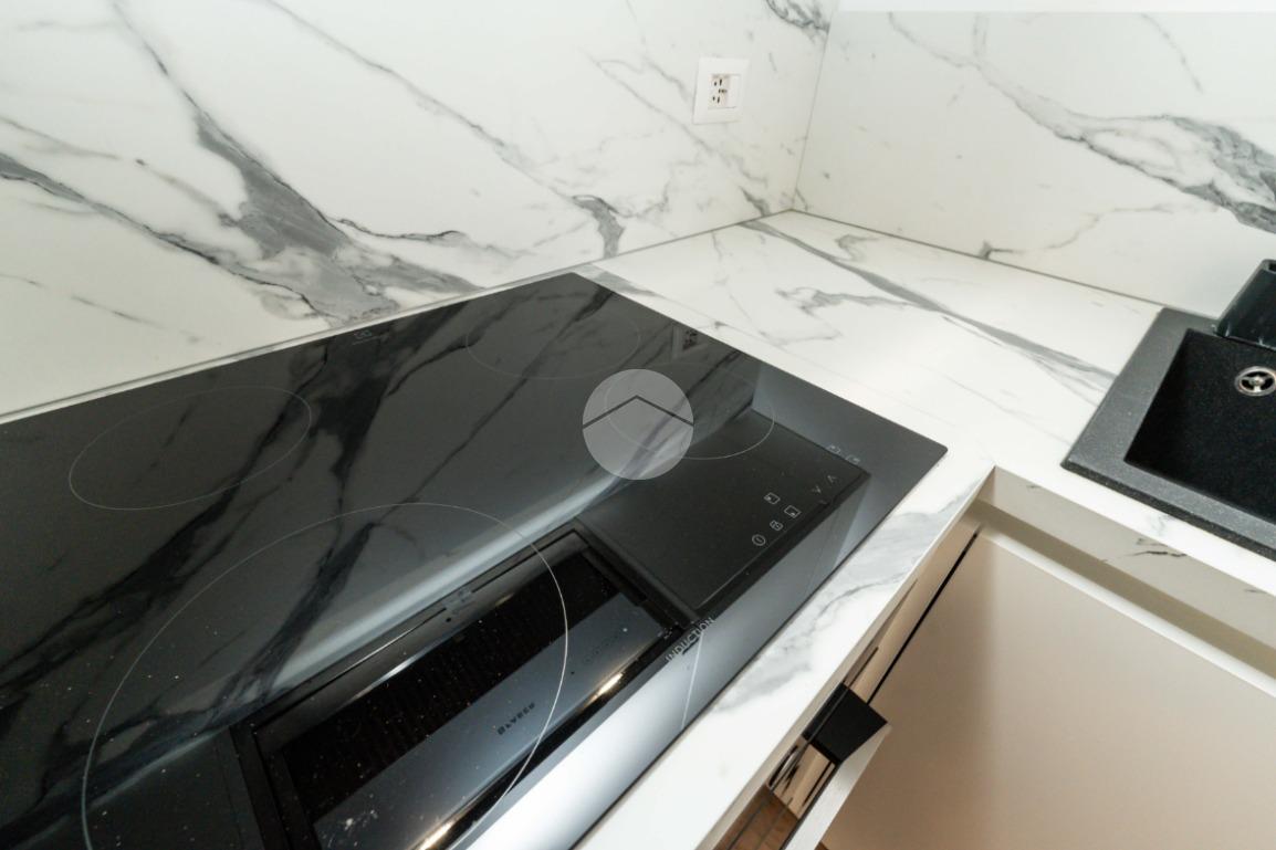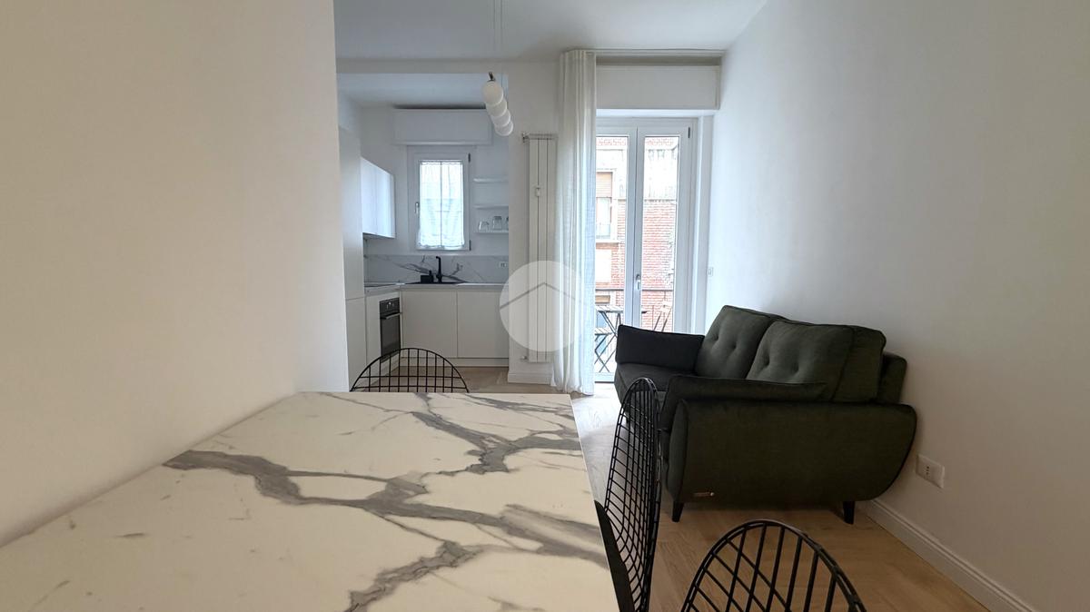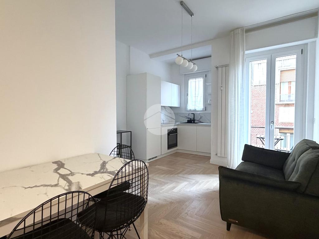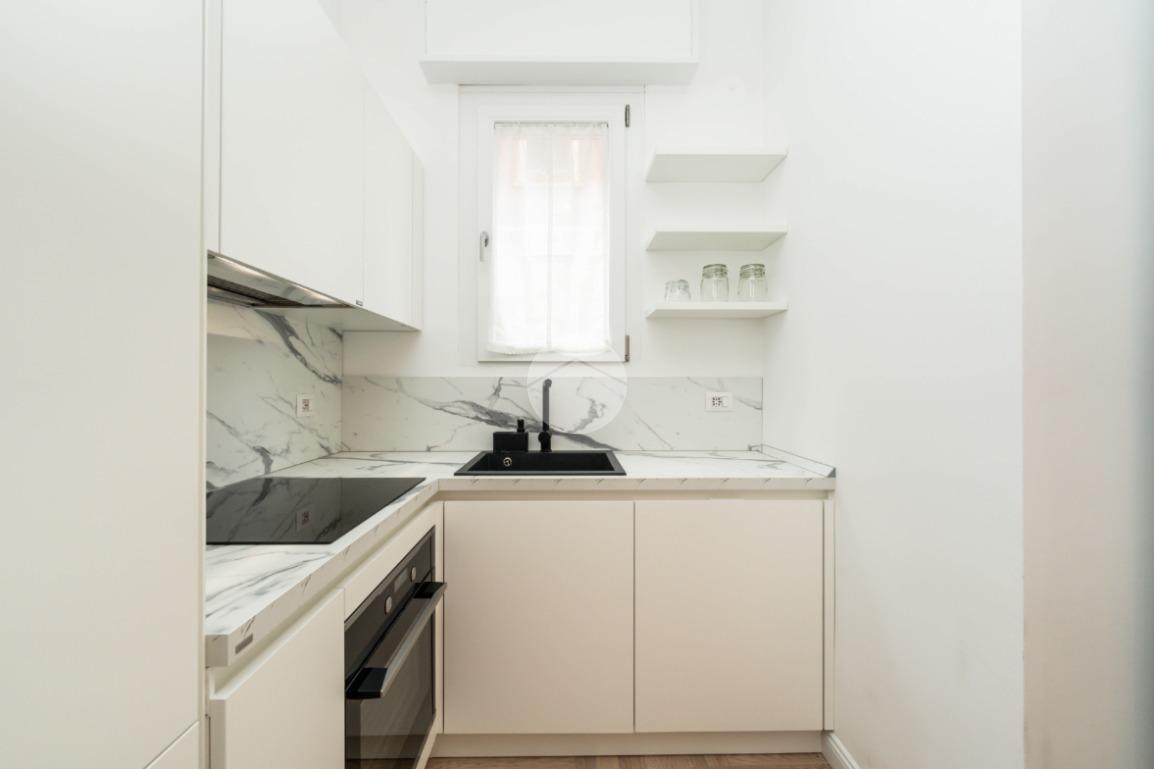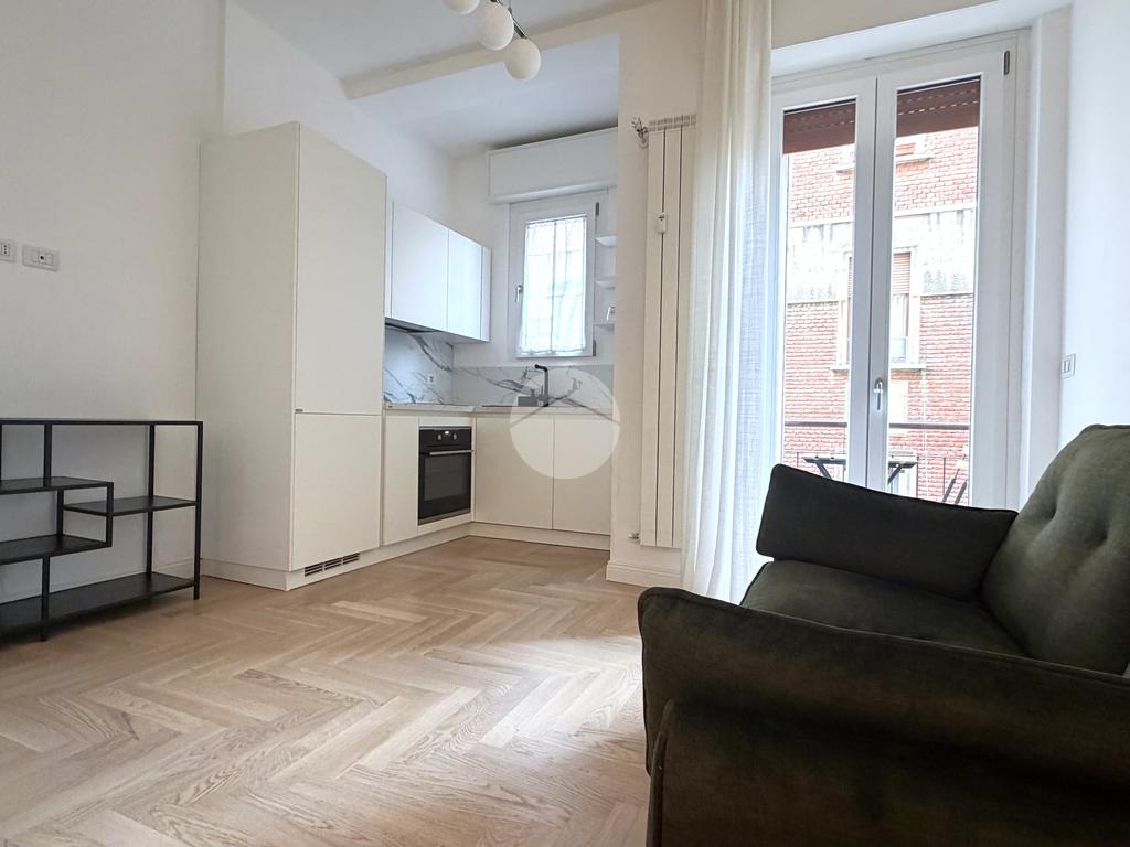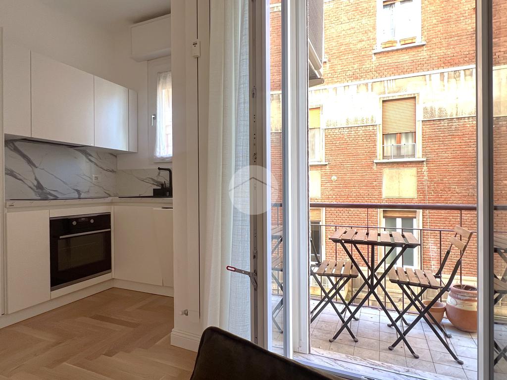 L’appartamento, completamente ristrutturato, accoglie con un ampio ingresso che conduce a una luminosa zona living, vero cuore della casa. La cucina a vista, realizzata su misura, si integra perfettamente con l’ambiente e si apre su un balcone con affaccio interno, ideale per godere di tranquillità e privacy pur restando nel pieno della città.