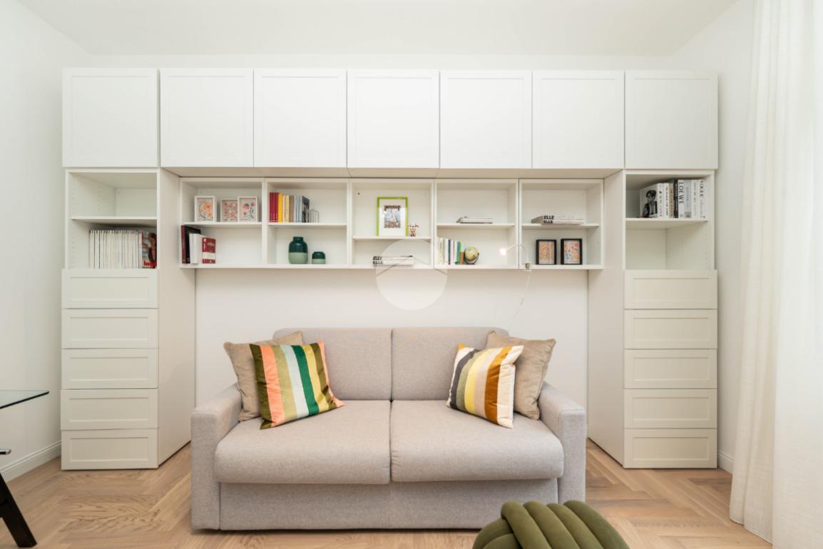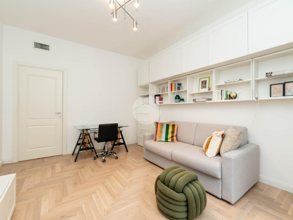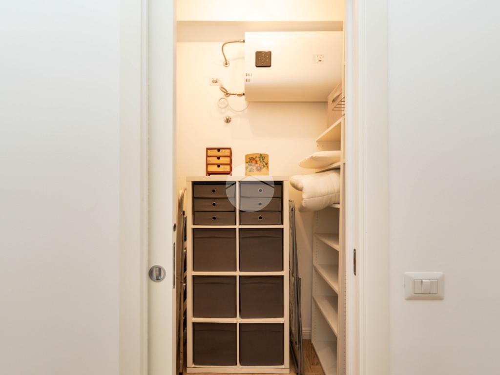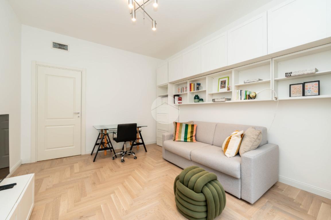 La zona notte è ben organizzata: la camera matrimoniale principale offre una raffinata cabina armadio e un bagno privato en-suite, creando uno spazio intimo e confortevole. Il secondo ambiente, attualmente adibito a studio, si presta perfettamente anche come camera aggiuntiva, stanza per ospiti o spazio dedicato allo smart working.